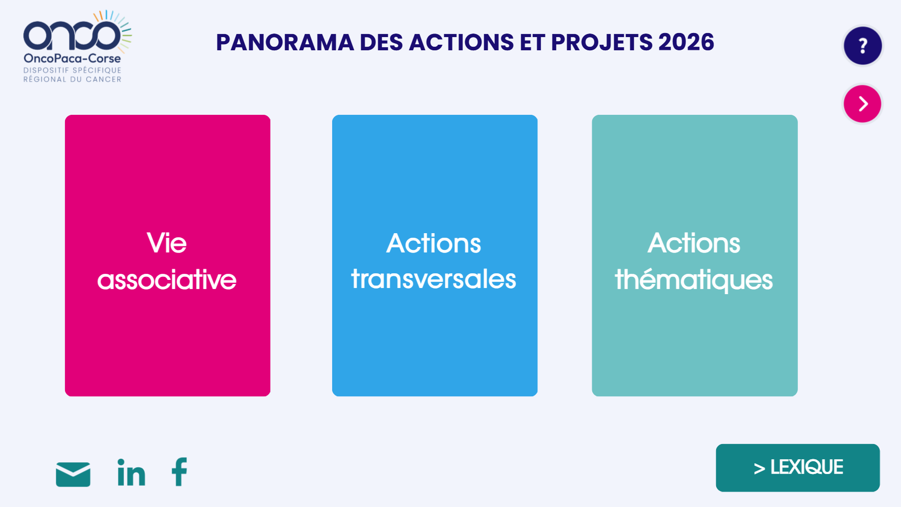 Le plan d’action annuel du DSRC OncoPaca-Corse est issu des missions relevant de l’Institut National du Cancer et des ARS de Paca et de Corse, ainsi que des différentes sollicitations de ses membres et partenaires.