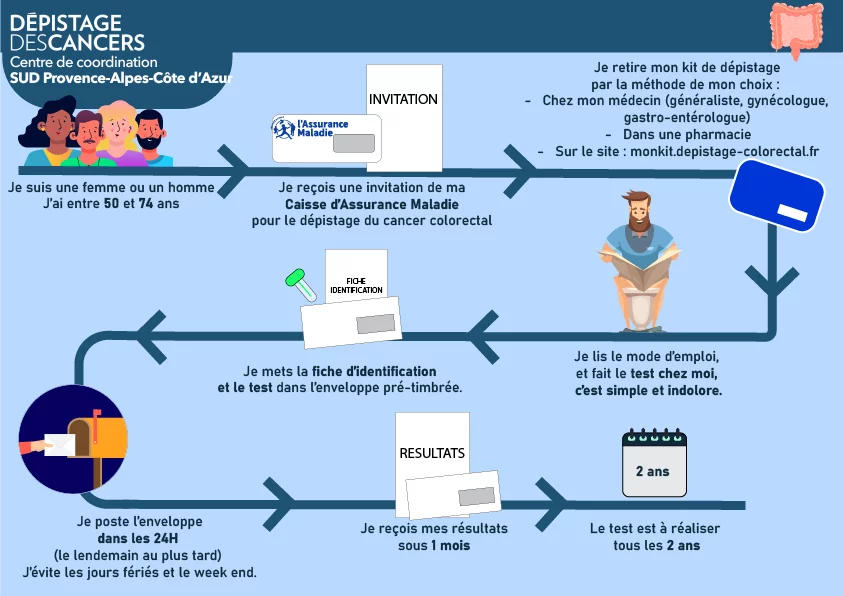 Vous pouvez obtenir le kit de dépistage du cancer colorectal, à réaliser chez soi :
