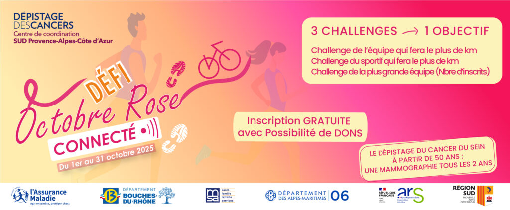 Le CRCDC (Centre Régional de Coordination des Dépistages des Cancers) Sud Paca joue un rôle clé dans la promotion du dépistage organisé du cancer du sein dans notre région. Participez à leur défi connecté régional qui se déroulera tout le long du mois d’octobre.