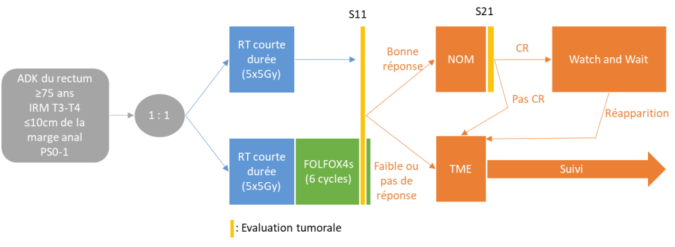 Etude de phase III, randomisée, évaluant deux stratégies de traitement pour le cancer rectal localement avancé, chez des patients de 75 ans et plus